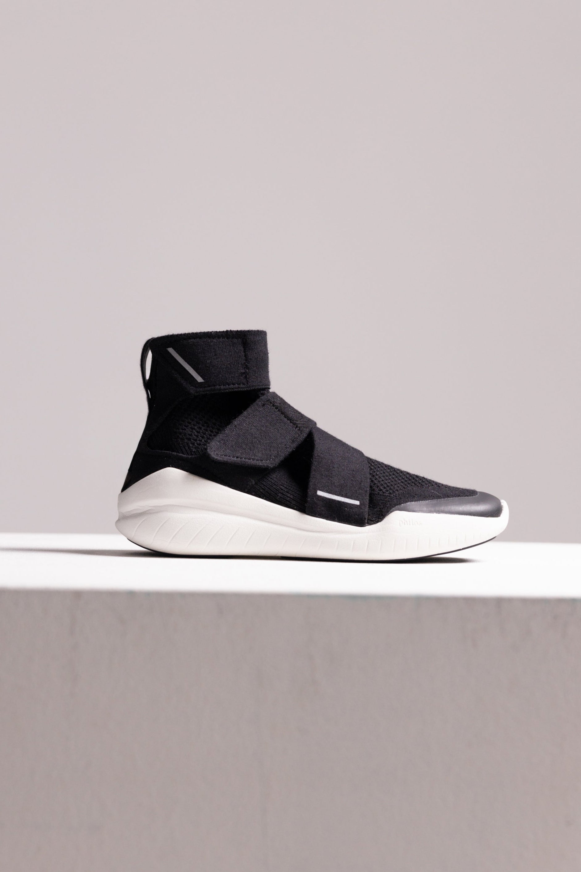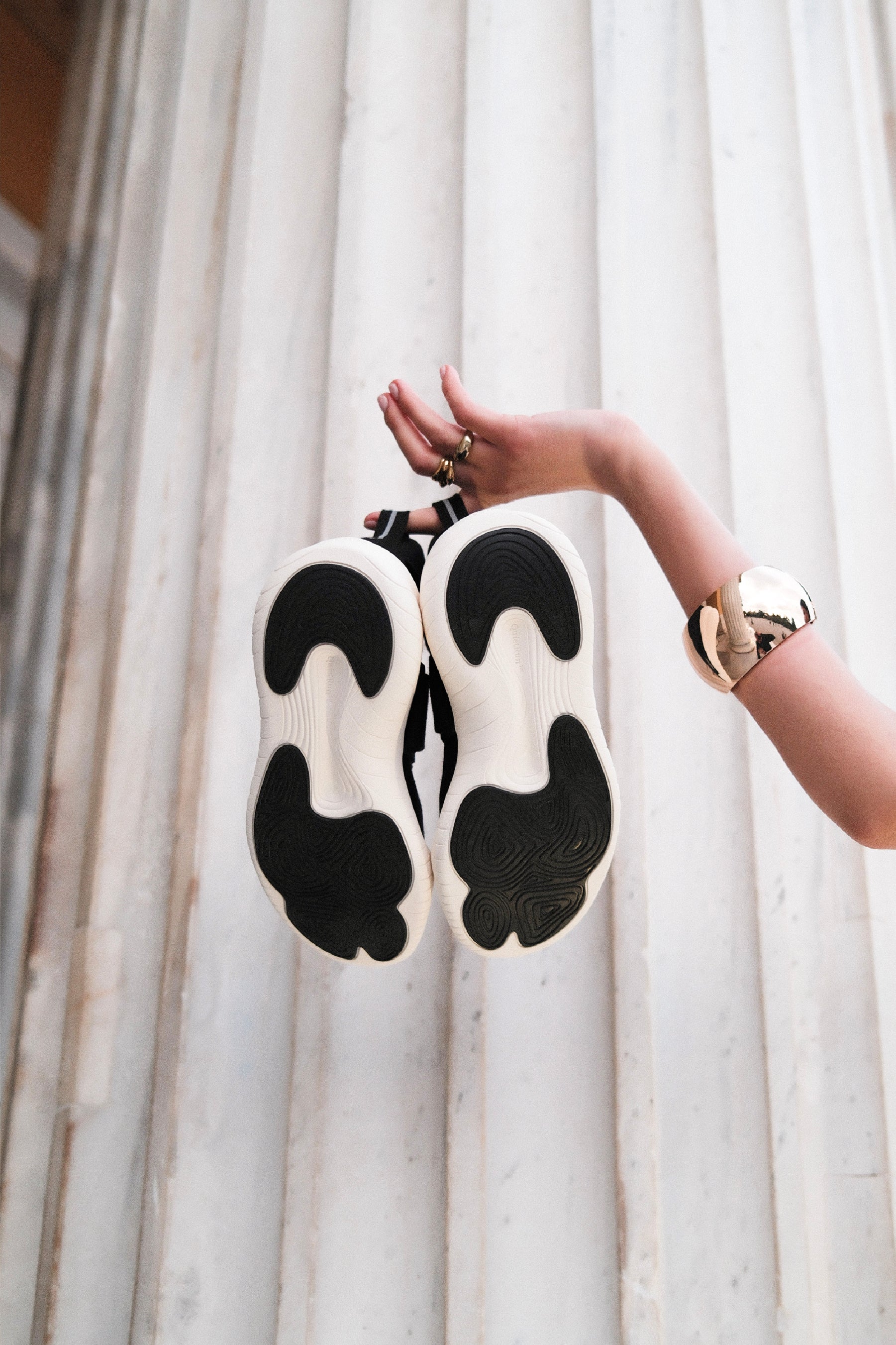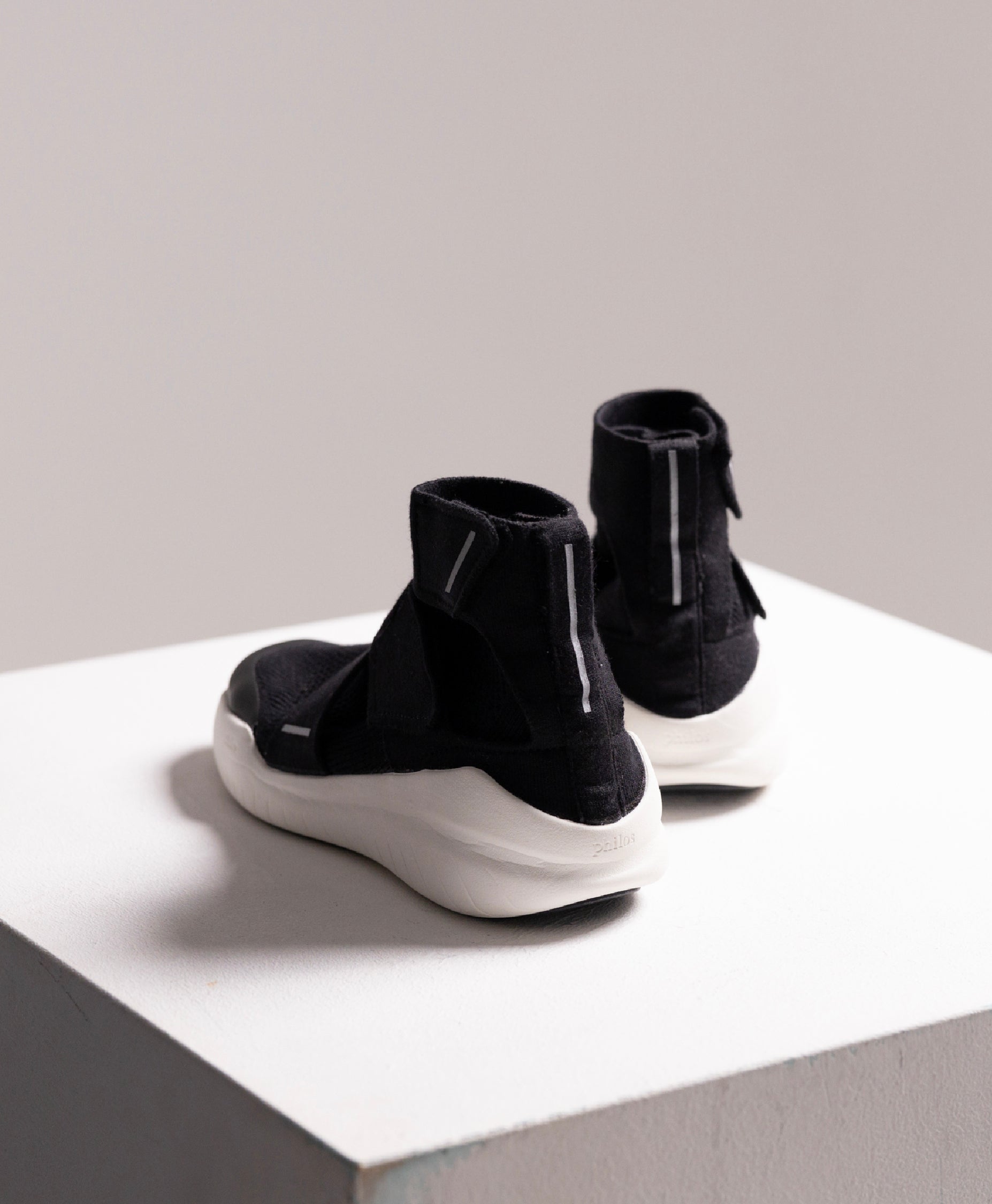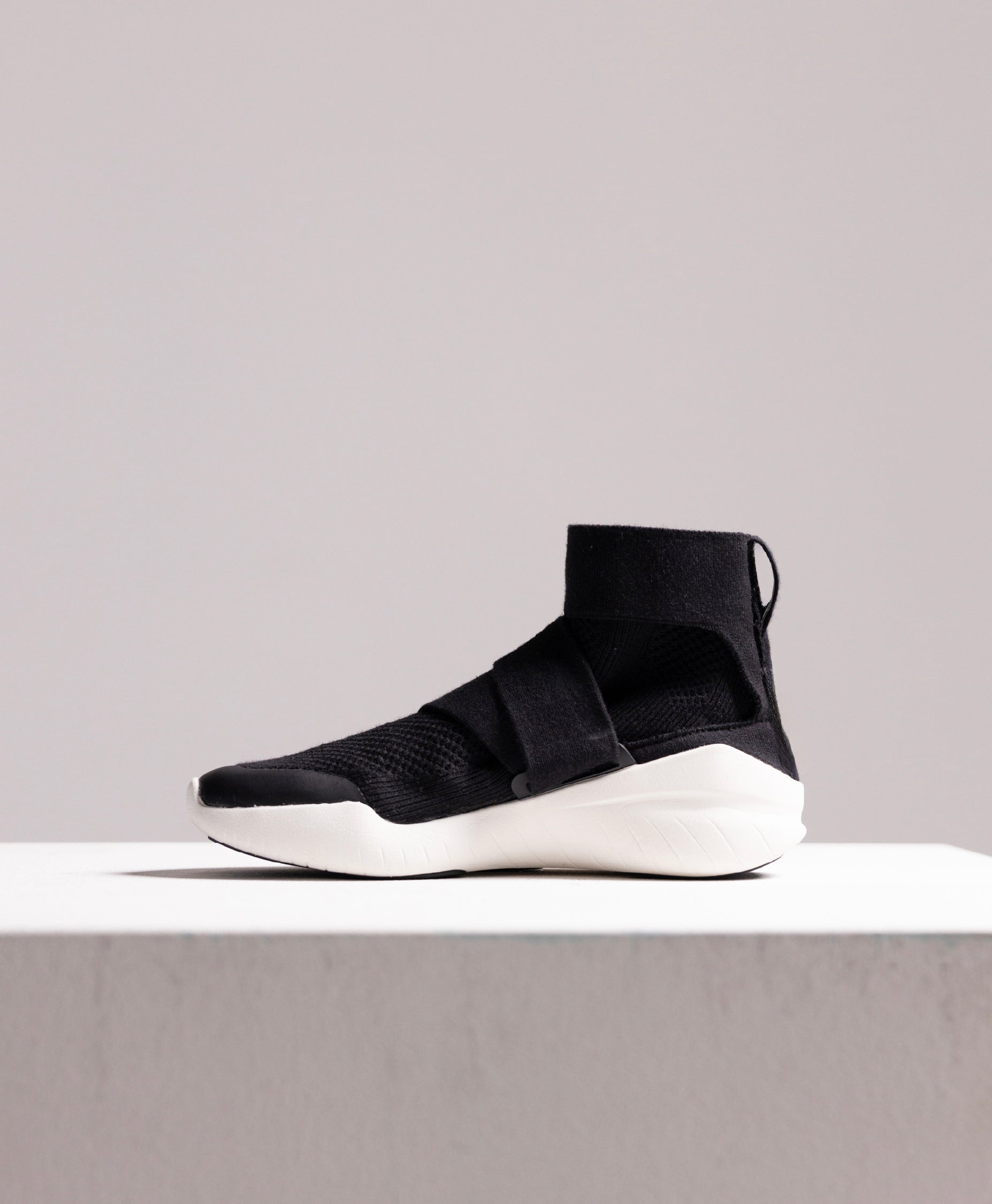 Laceless design. Philos Athena purposefully rejects laces, as standard shoelaces restrict blood circulation as the foot expands while running. The Athena secures and supports the foot and ankle while encouraging blood flow during runs.