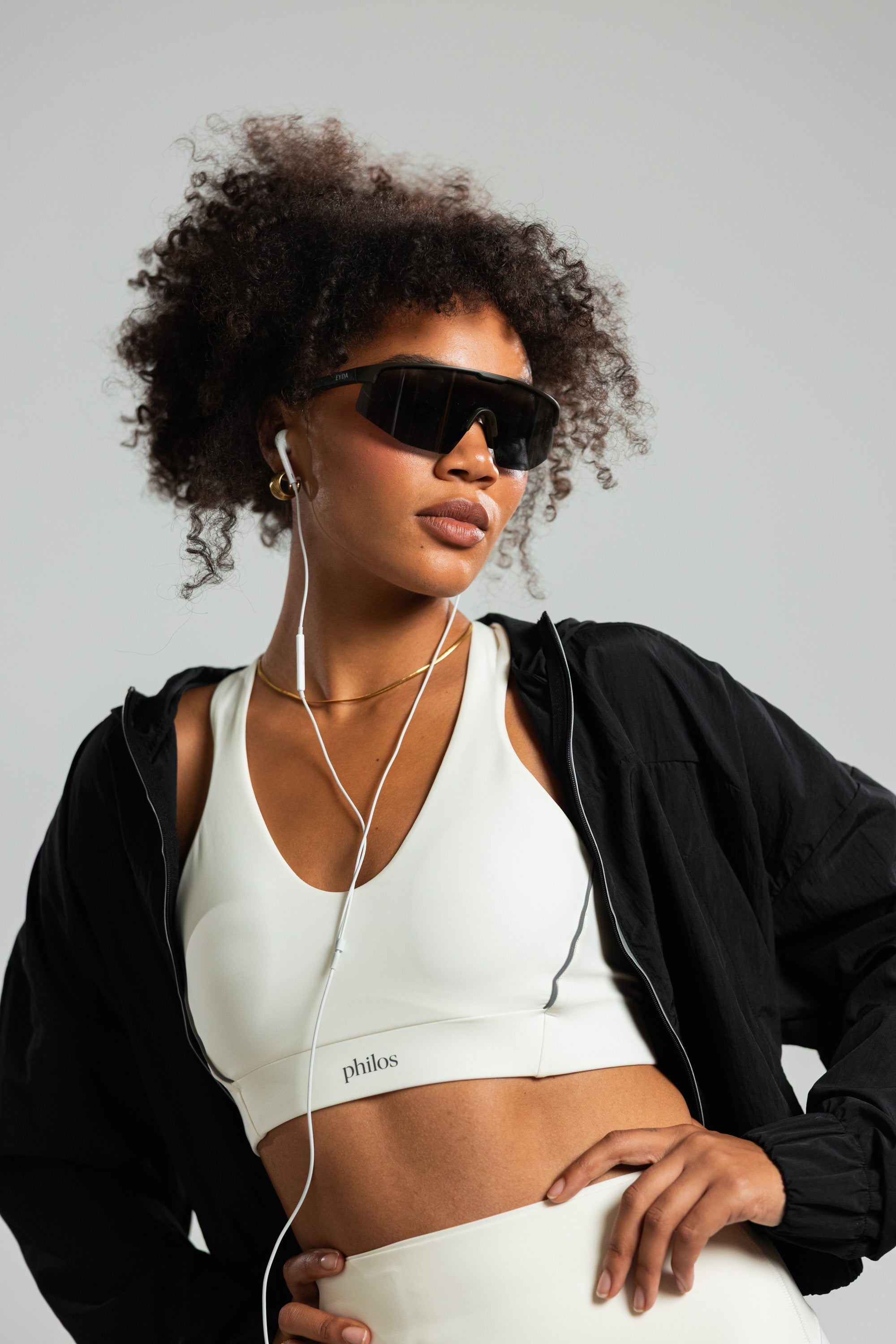 The Philos Running Scoop Bra is precision-engineered for performance. Expertly crafted from Aéras™, our award-winning performance knit fabric made in France (66% nylon, 34% elastane), it delivers a super-smooth, second-skin feel that prevents chafing during movement. Precision tailored in Portugal by a female-owned manufacturer, this all-season bra offers mid-support compression for A to C cups, sculpting comfortably while moving with your body. The fabric is sweat-wicking, fast drying, and designed with 4-way performance stretch and SPF protection, ensuring comfort and coverage from your daily run to race day. Engineered as your all-season running bra, whether you’re racing in summer heat or layering in colder months.