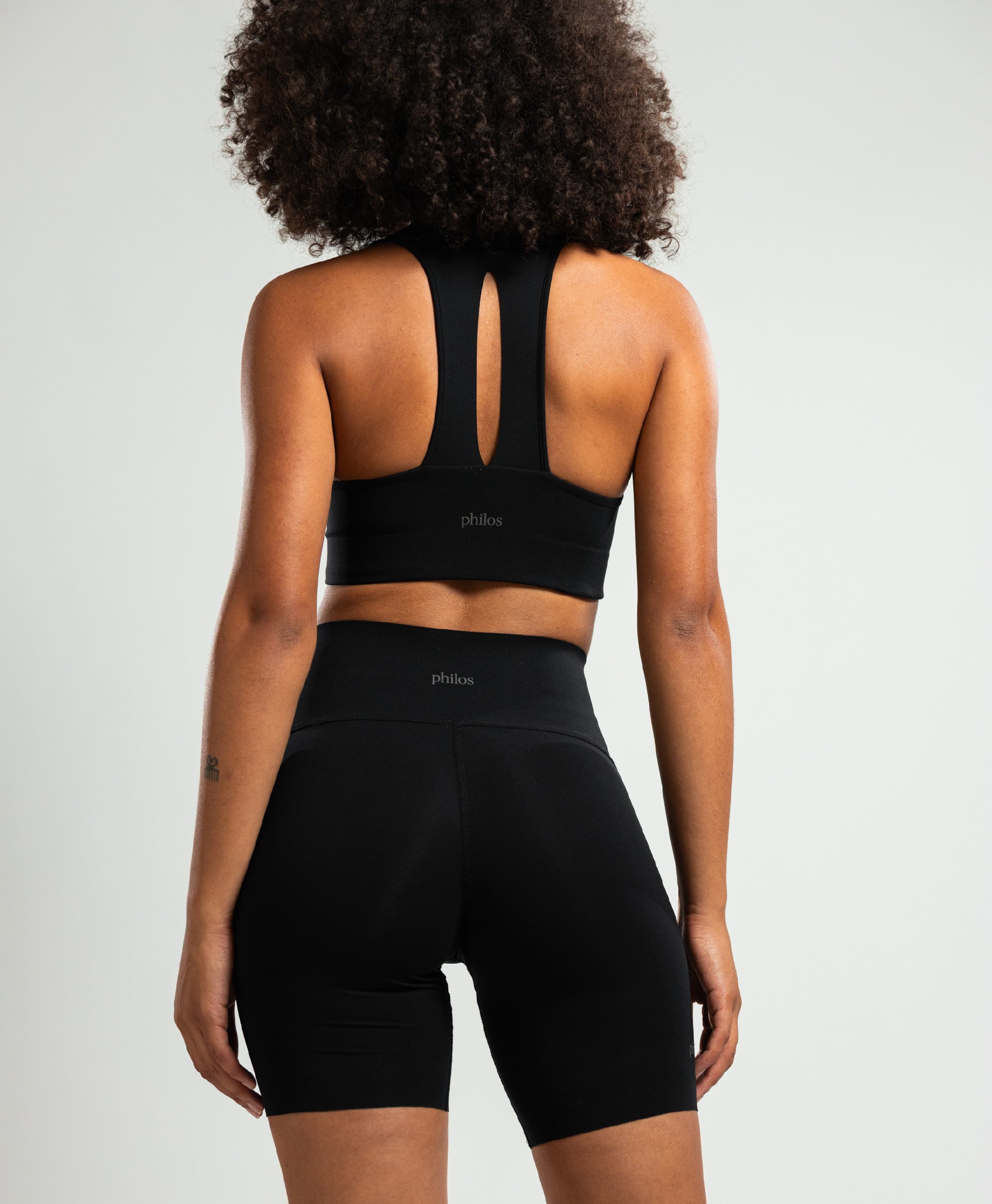 Our bestselling Philos women’s running shorts are precision-engineered for performance. They are expertly crafted from Aéras™, our award-winning performance knit fabric made in France (66% nylon, 34% elastane), with a super smooth feel on the skin that prevents chafing during movement. Precision tailored in Portugal by a female-owned manufacturer, these high-waisted women’s running shorts deliver soft compression that sculpts and flatters while moving easily with your body. The fabric is sweat-wicking, fast drying, and designed with 4-way performance stretch and SPF protection, ensuring comfort and coverage from your daily run to race day. Engineered as your all-season running shorts, whether you’re racing in summer heat or layering in colder months.