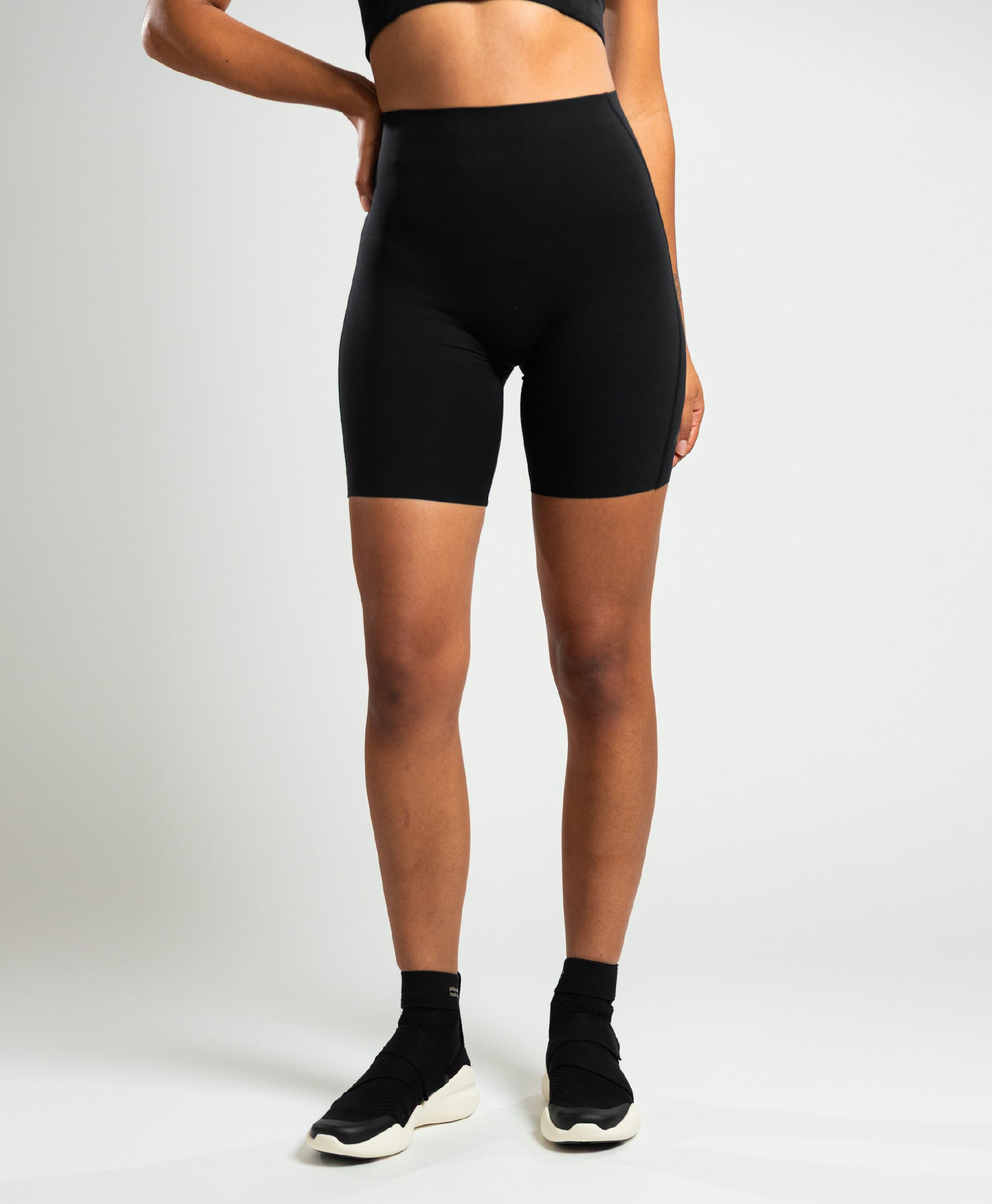 Shorts designed with no front seam ensuring a comfortable fit. The clean dual-layered bonded waist hugs your hips and won’t slide or move while running, and the laser-cut raw hems create a sleek silhouette on the body.