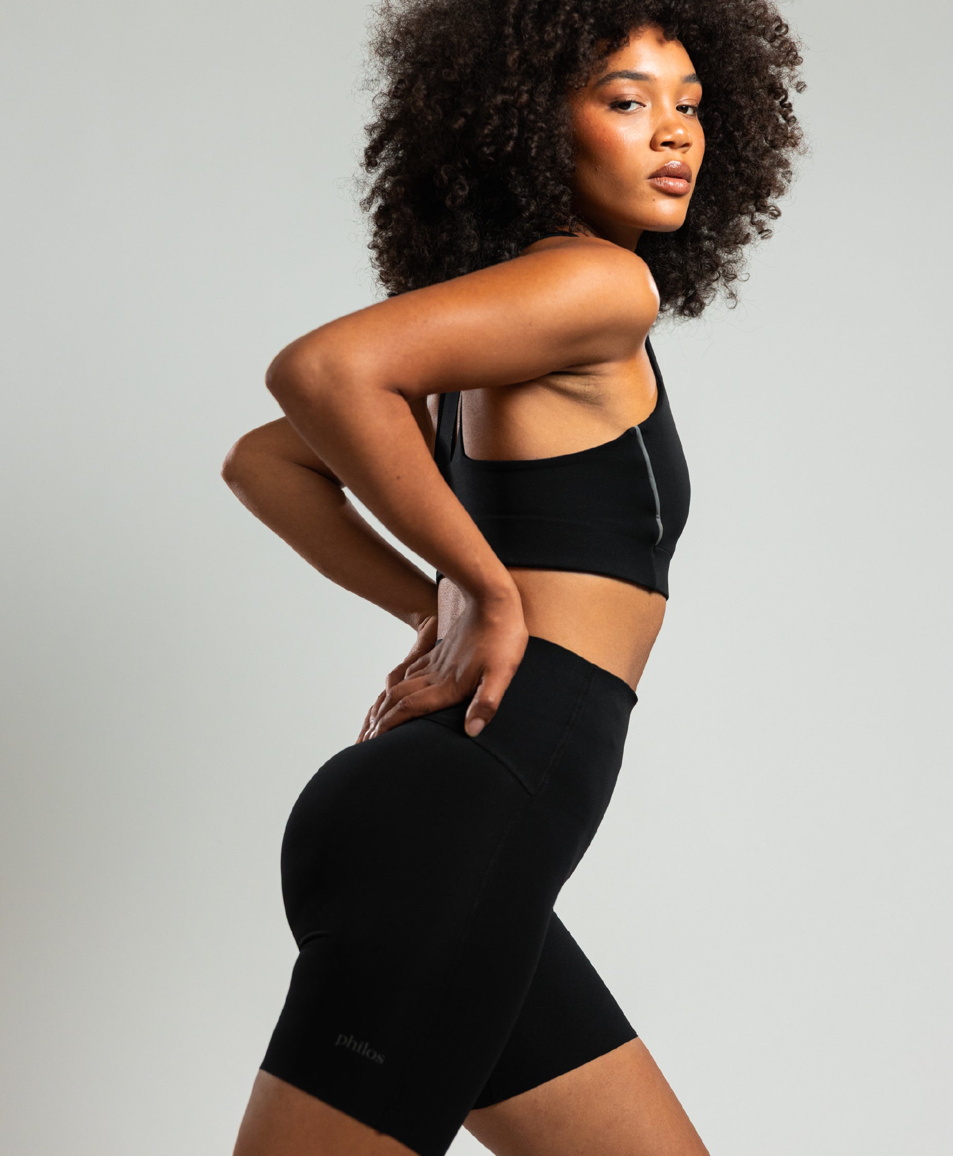 Our bestselling Philos women’s running shorts are precision-engineered for performance. They are expertly crafted from Aéras™, our award-winning performance knit fabric made in France (66% nylon, 34% elastane), with a super smooth feel on the skin that prevents chafing during movement. Precision tailored in Portugal by a female-owned manufacturer, these high-waisted women’s running shorts deliver soft compression that sculpts and flatters while moving easily with your body. The fabric is sweat-wicking, fast drying, and designed with 4-way performance stretch and SPF protection, ensuring comfort and coverage from your daily run to race day. Engineered as your all-season running shorts, whether you’re racing in summer heat or layering in colder months.
