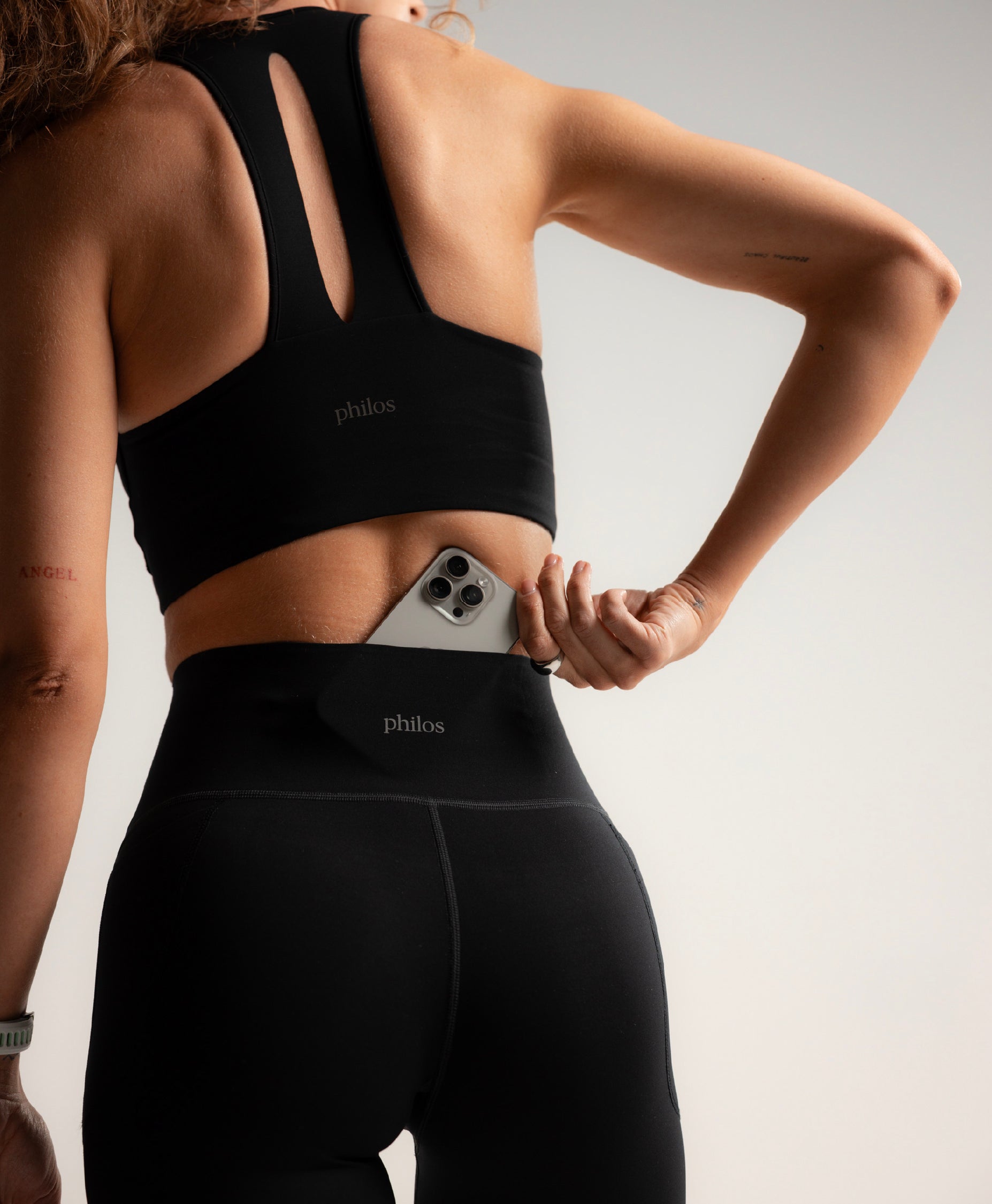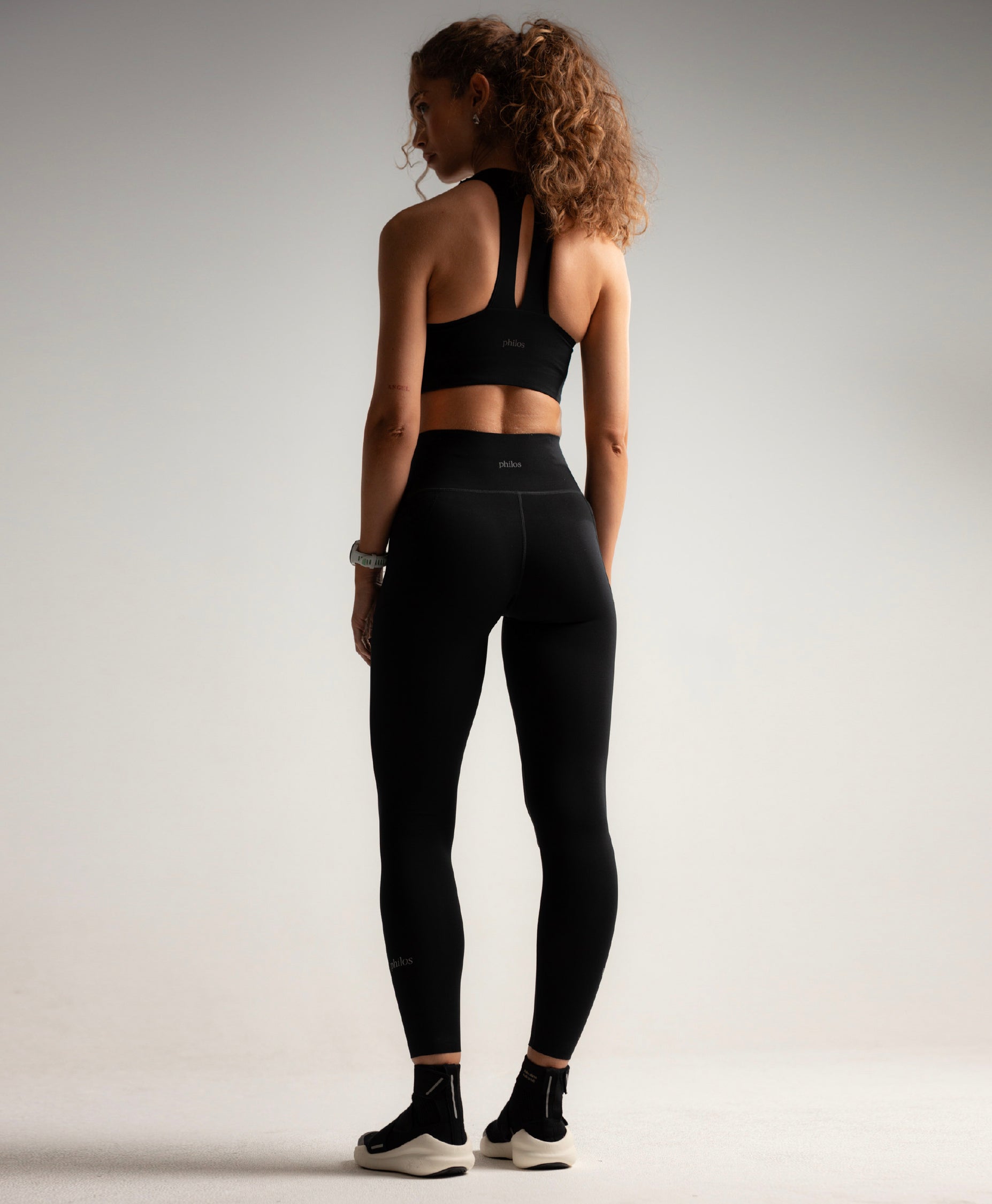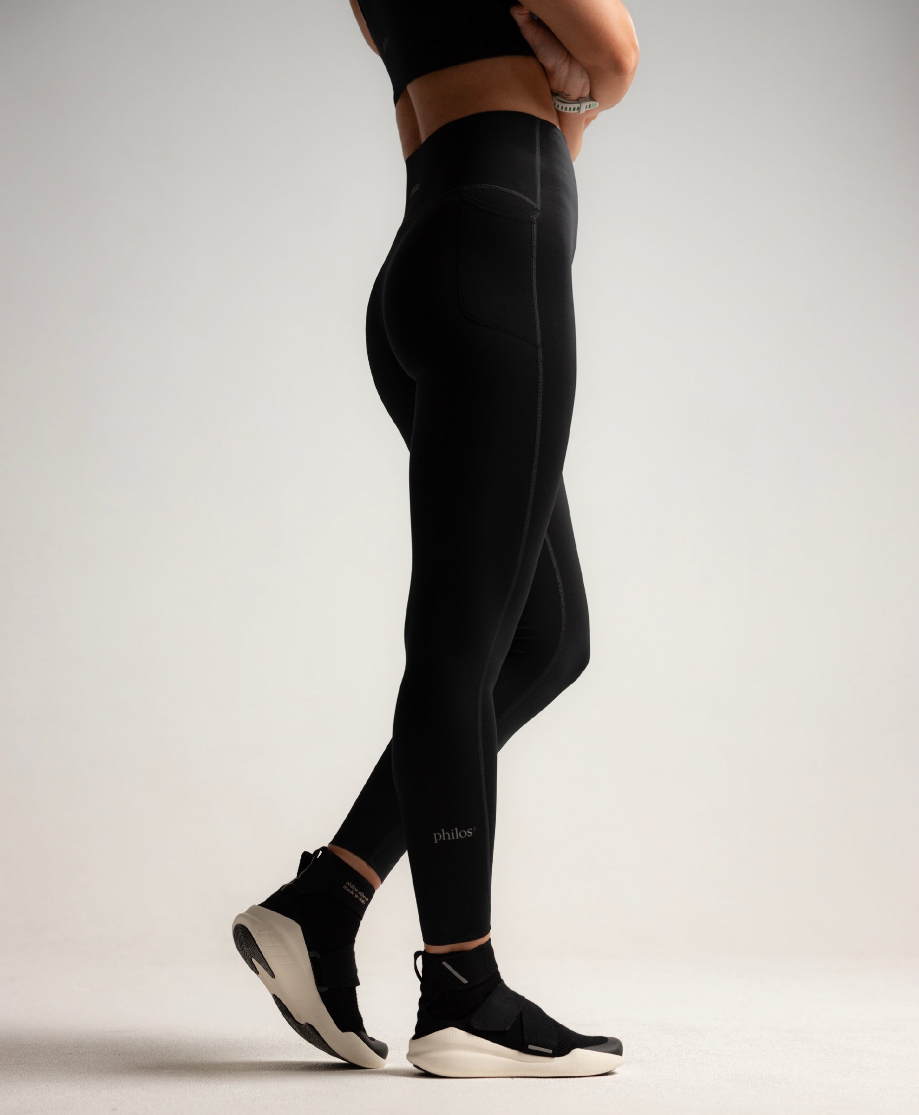 Our bestselling Philos women’s running tights are precision-engineered for performance. They are expertly crafted from Aéras™, our award-winning performance knit fabric made in France (66% nylon, 34% elastane), with a super smooth feel on the skin that prevents chafing during movement. Precision tailored in Portugal by a female-owned manufacturer, these high-waisted women’s running tights deliver soft compression that sculpts and flatters while moving easily with your body. The fabric is sweat-wicking, fast drying, and designed with 4-way performance stretch and SPF protection, ensuring comfort and coverage from your daily run to race day. Engineered as your all-season running tights, whether you’re racing in summer heat or layering in colder months.