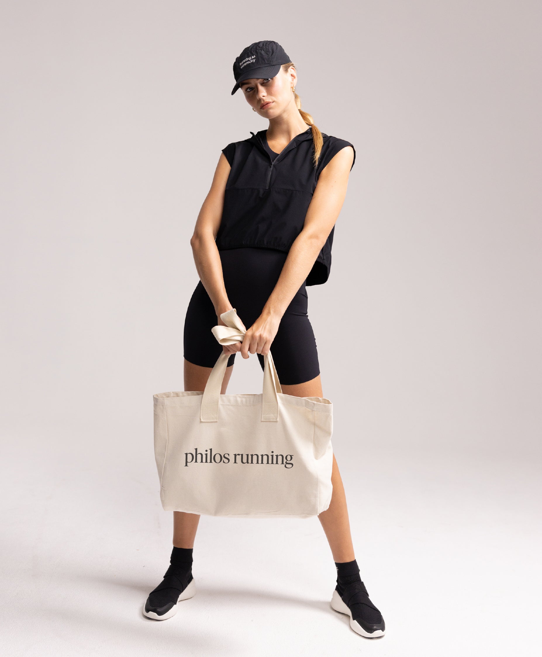 Measuring 34cm in height, 47cm in width, and 10cm in depth, this tote bag offers generous space for your running essentials while maintaining a minimal look.